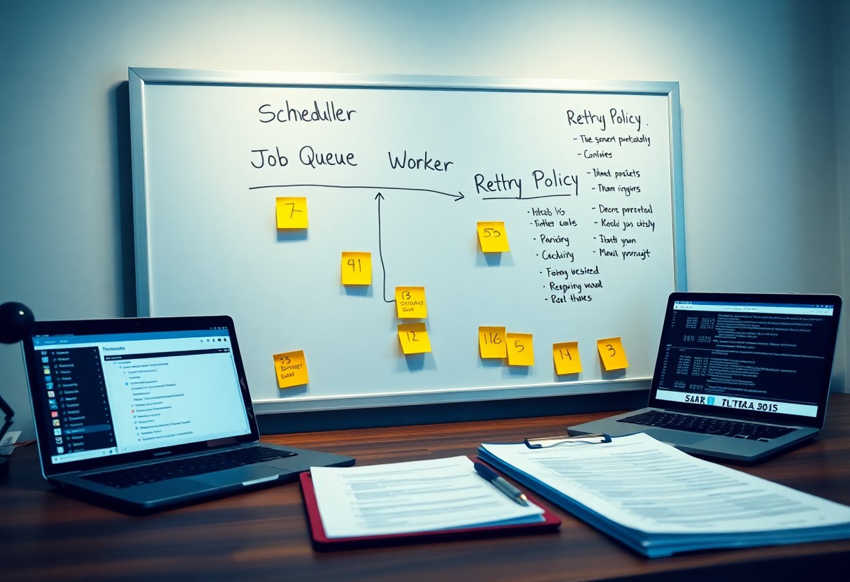 For example, teams often pair RabbitMQ or Kafka for queues with a scheduler that enforces rate limits and affinity; one logistics case using Kafka + Kubernetes autoscaling cut processing time from 600ms to 120ms and lowered errors by 45%. You should set SLOs (e.g., 99.9% availability), use exponential backoff with a 30s cap, and instrument with Prometheus/Grafana for realtime alerts.